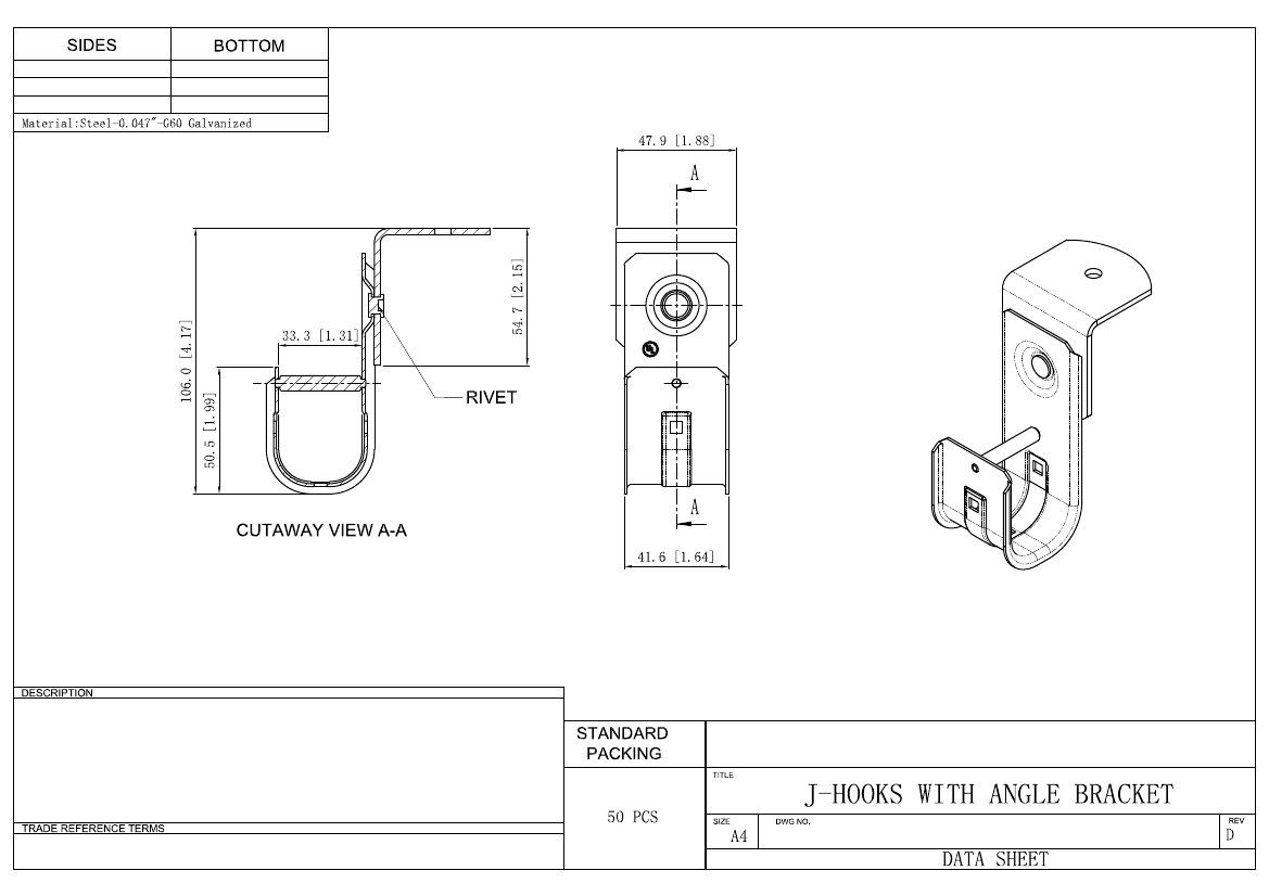 1 5/16 Inch J-Hook with Angle Bracket Cable Support