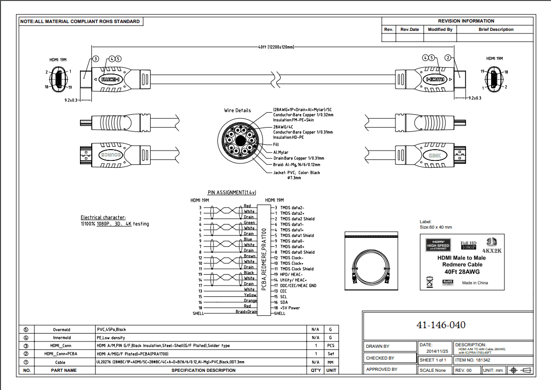 40 Foot High Speed HDMI Cable with Ethernet and RedMere Technology