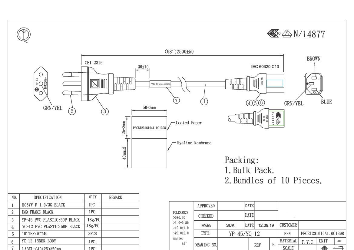 2.5 M | Used in Italy | Type L | 10 Amps | 250 Volts | H05VV-F Jacket
