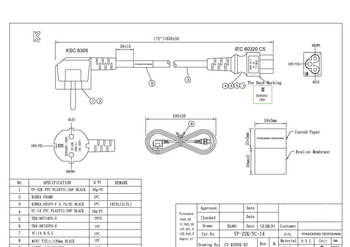 This molded KSC8305 to C5 International Power Cord is compatible with Korean plugs. It can be used with servers, CPUs, and other standard C5 power connector devices. It is made with high quality material and tested for dielectric voltage-withstand, polarization, and continuity to assure reliability and long-lasting performance. The power cord is manufactured in compliance with KS C 8305 standards and is KTL certified. All international power cords hold the International Color Code (ICC) on the inner conductors of brown, blue, and green with a yellow stripe.