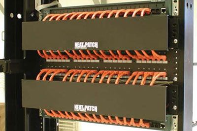 The Neat Patch is a new tool for horizontal cable management. It’s innovative approach will save you time and money and will make your installations look professional with very little effort. Most horizontal cable managers amount to little more than cable duct. They allow you to run cables along the front or rear of your rack but fail to take advantage of the interior rack space. This can lead you with dangling cables if you don’t have exact lengths of cable. Excess cable can waste time and money, and will make your rack installs look messy.