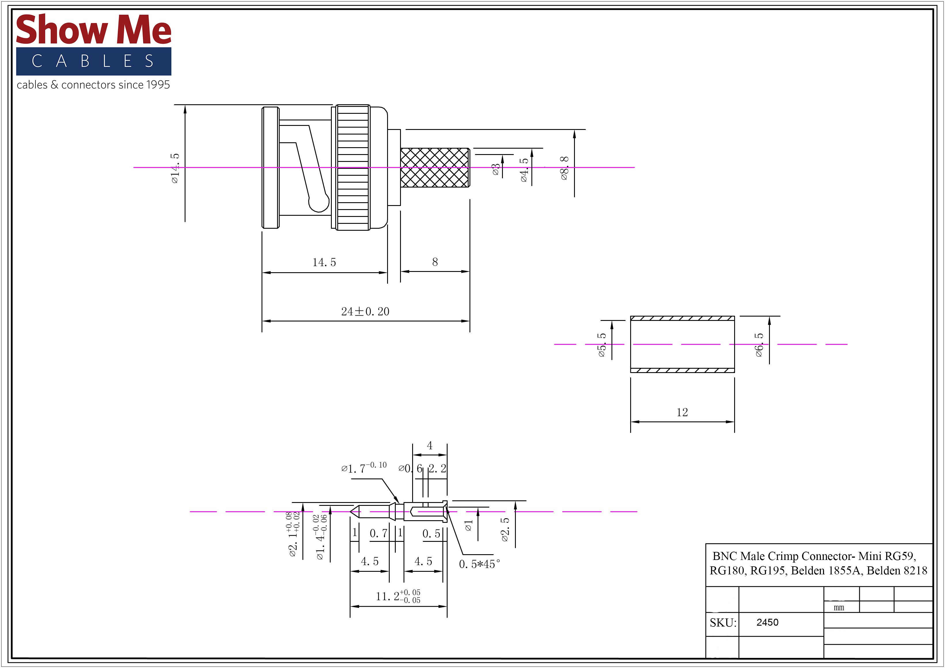 This 50 ohm BNC crimp connector is a locking RF connector that is used on many types of coaxial cable. BNC connectors are commonly used on test equipment, avionics, analog and serial digital interfaces as well as video signals. BNC crimp connectors require a crimp tool for termination.