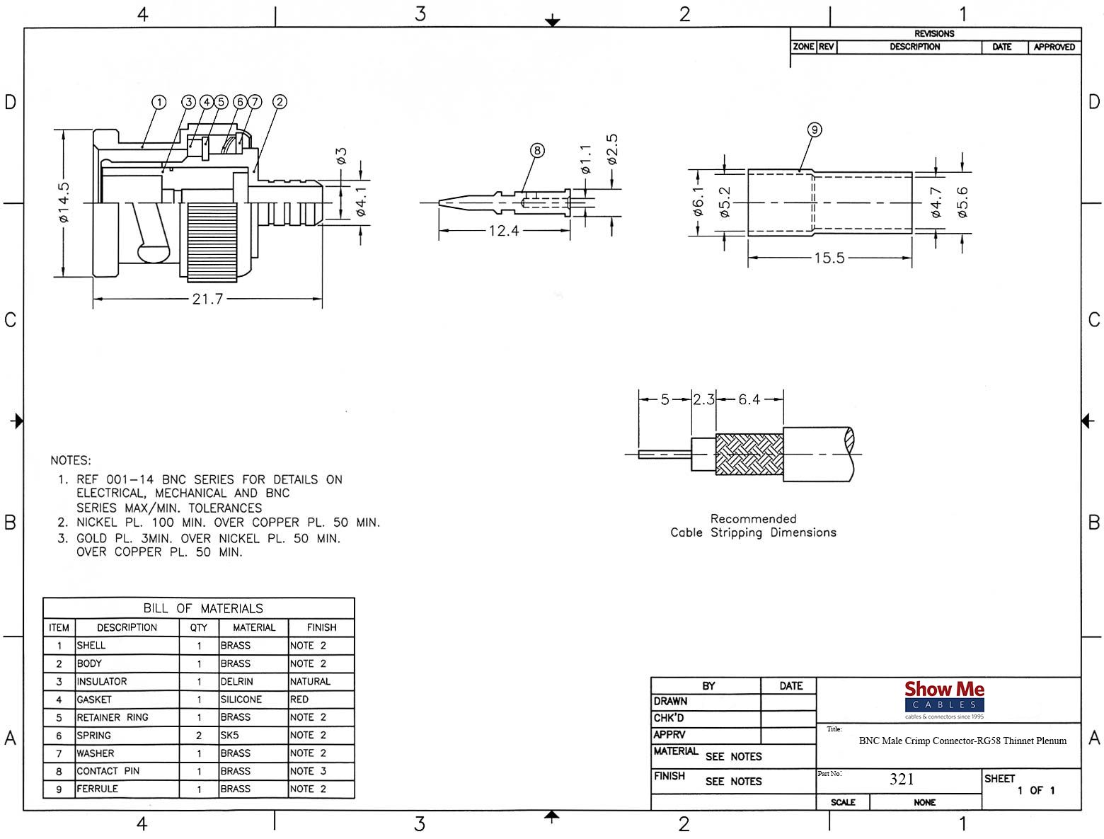 BNC Male Crimp Connector - RG58 Thinnet Plenum