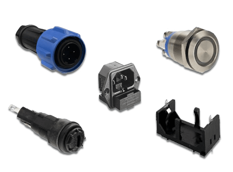 We offer six new types of Bulgin products to meet your power distribution needs: battery holders, fuse holders, pushbutton switches, power entry modules, circular power connectors, and circular data connectors.