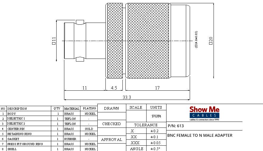A: BNC connectors are most commonly made in 50 and 75 ohm versions.Video and DS3 Telco central office applications primarily use 75 ohm connectors, while 50 ohm connectors are used for data. You can easily tell the difference between the two by looking for the dialectric.The 50 ohm connector features a white dialectric surrounding the center pin, while the 75 ohm BNC connector is surrounded by air (no dialectric). 50 ohm and 75 ohm BNC connectors will mate with each other. At frequencies under 10 MHz the impedance mismatch will not have any affect. If you are above 10 MHz the chances of signal distortion become more significant.