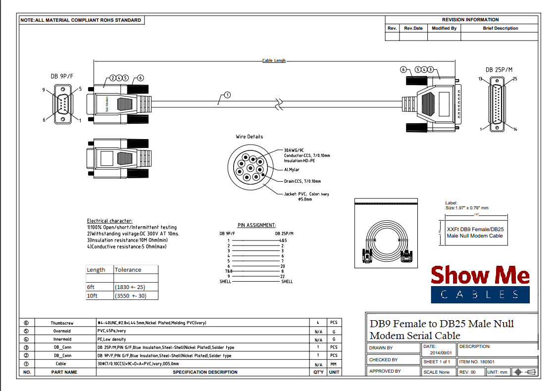 DB25 Male to DB9 Female Null Modem Cables are commonly used to connect your PC to another nearby PC or serial device using its modem protocol. This cable is fully shielded to prevent unwanted EMI/RFI interference. The fully molded connectors with thumbscrews provide you with a quick and easy connection. These cables are durable enough for use in industrial settings.