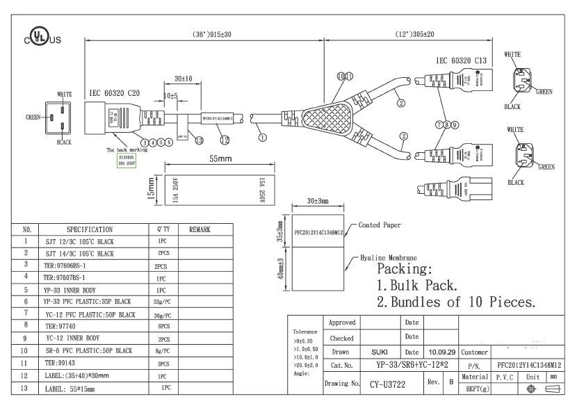 This C20 to C13 Splitter Power Cord makes it easy to connect two devices to one power source. When using a splitter, you can save space by eliminating those extra bulky cords, and keep your power strips or wall plugs free of unnecessary clutter. It has one C20 connector and two C13 connectors. This splitter is ideal for compact workplaces and home offices where space is limited. It is made of high quality materials to ensure maximum durability and a long life. These are the standard power cords used for many devices, including monitors, computers, printers, scanners, TVs, and sound systems.