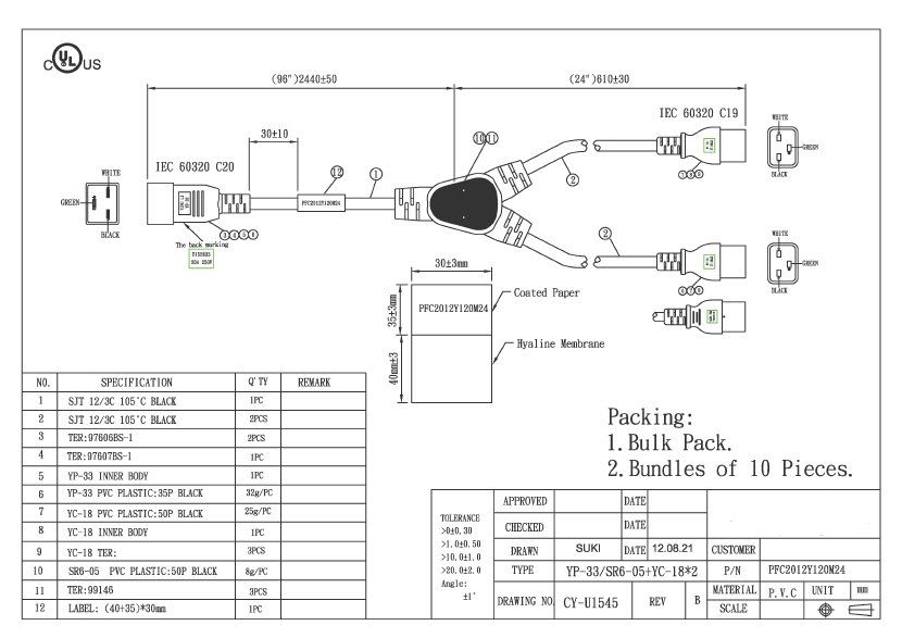 This C20 to C19 Splitter Power Cord makes it easy to connect two devices to one power source. When using a splitter, you can save space by eliminating those extra bulky cords, and keep your power strips or wall plugs free of unnecessary clutter. It has one C20 connector and two C19 connectors. This splitter is rated for high voltage and high current use and it is most commonly used with large gauge wire. It is made of high quality materials to ensure maximum durability and a long life. These are high end power cords used for many devices, including high end servers, PDU power strips, and they can be used with heavy machinery.