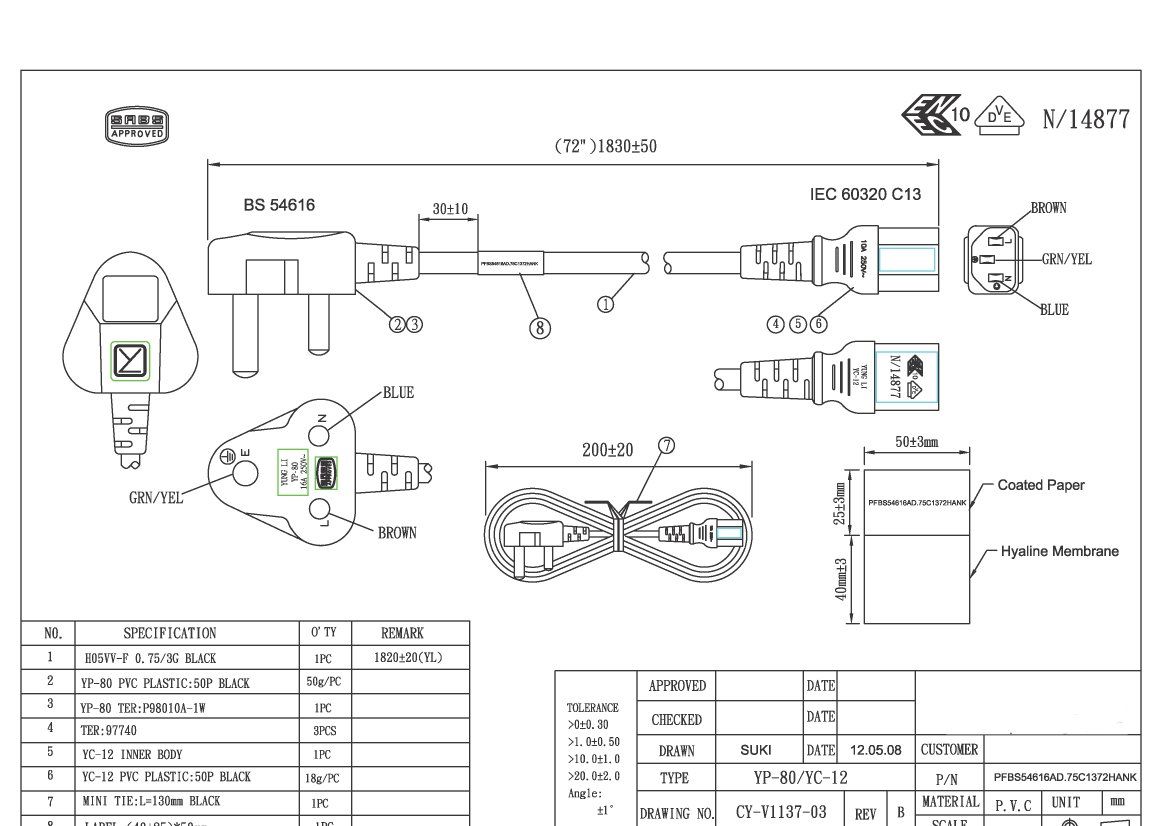 This molded SANS 164-1 to C13 International Power Cord is compatible with Indian and South African plugs. It can be used with servers, CPUs, and other standard C13 power connector devices. It is made with high quality material and tested for dielectric voltage-withstand, polarization, and continuity to assure reliability and long-lasting performance. The power cord is manufactured in compliance with BS546 standards and is SABS certified. All international power cords hold the International Color Code (ICC) on the inner conductors of brown, blue, and green with a yellow stripe.