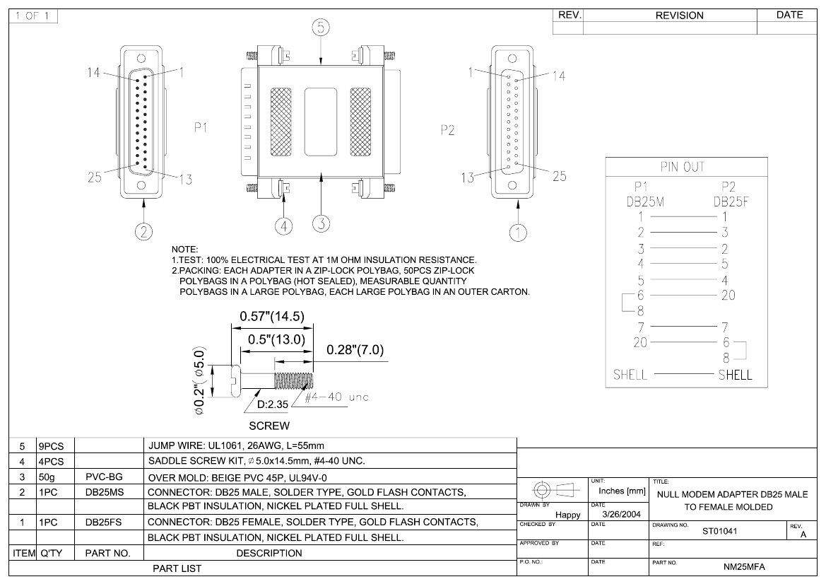 Plastic Body | Gold-Plated Contacts | Converts Serial Cable to Null Modem Cable