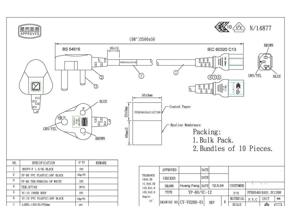 SANS 164-1 to C13 International Power Cord - 10 Amp - 2.5 M